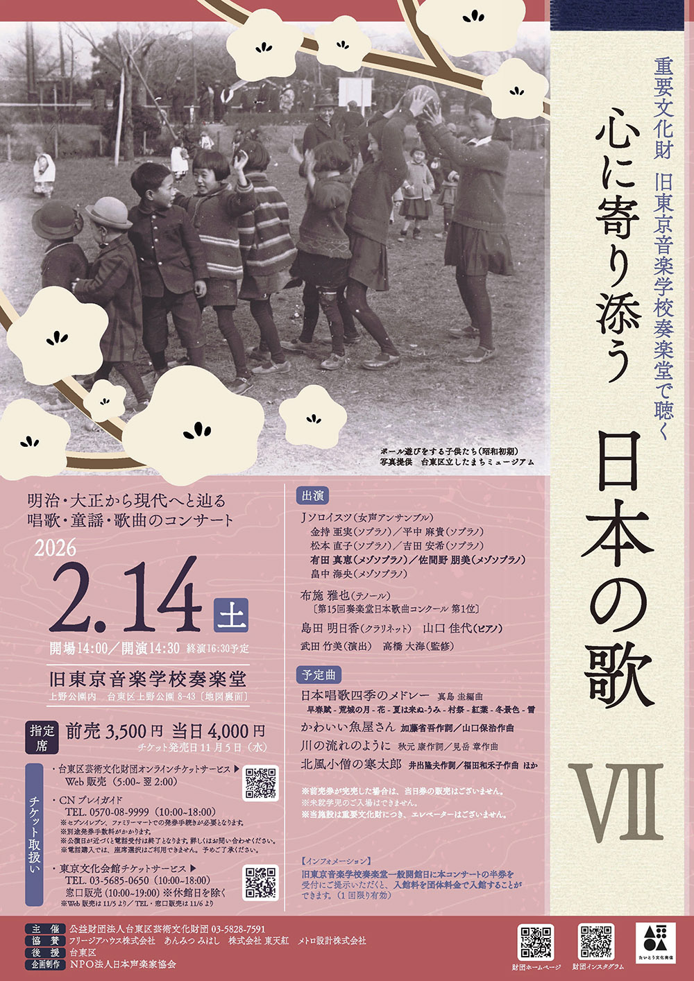 2026年2月14日(土) 14:00開場 14:30開演 旧東京音楽学校奏楽堂 (東京都台東区上野公園8-43) |