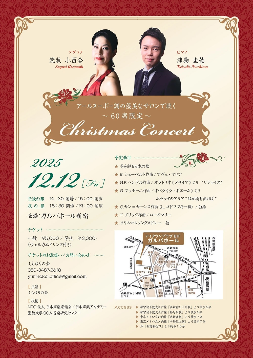 アールヌーボー調の優美なサロンで聴く〜 60席限定〜Christmas Concert 日本声楽家協会後援 |