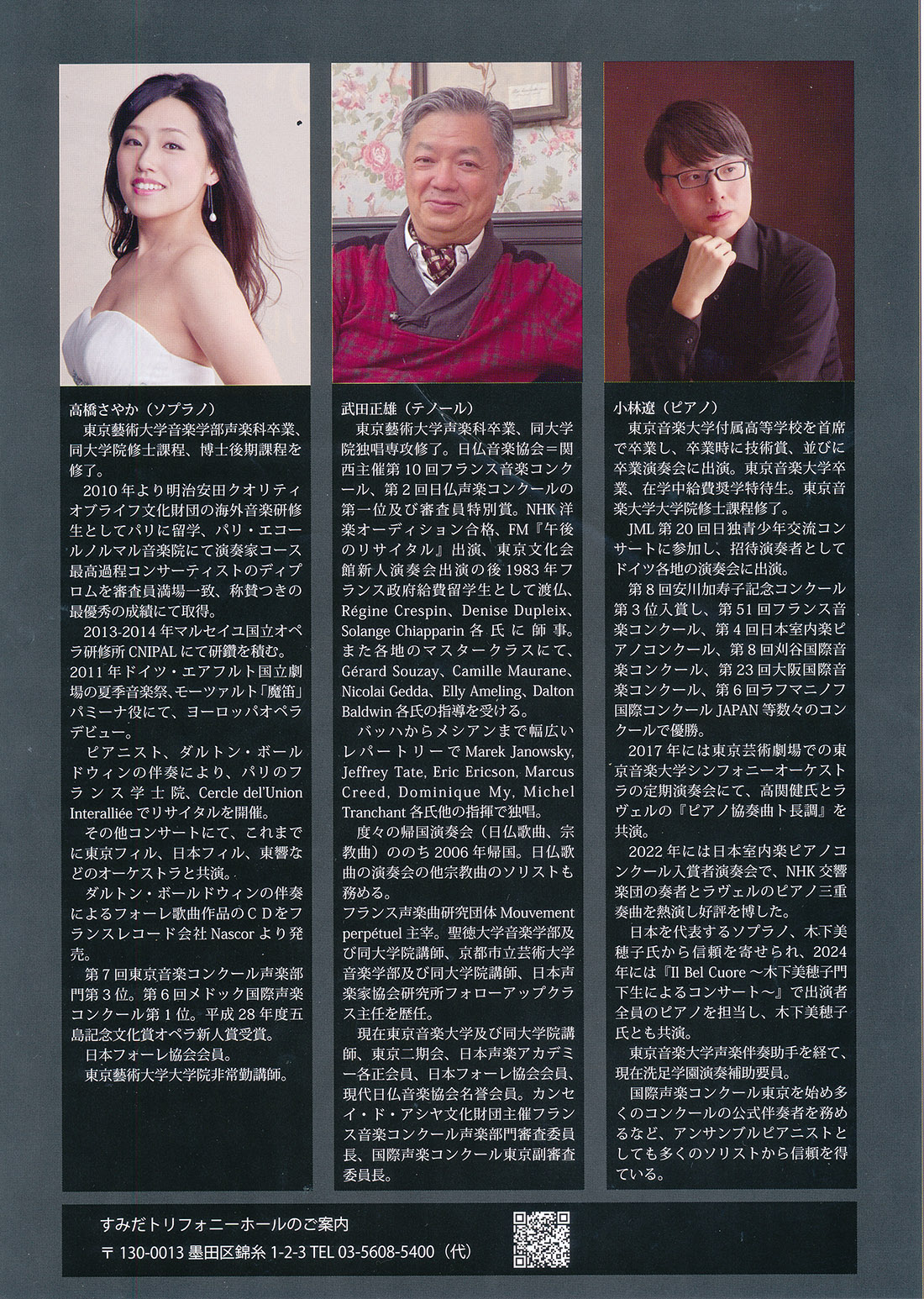 高橋さやか 武田正雄 小林遼 ジョイントリサイタル 日本声楽家協会後援 |