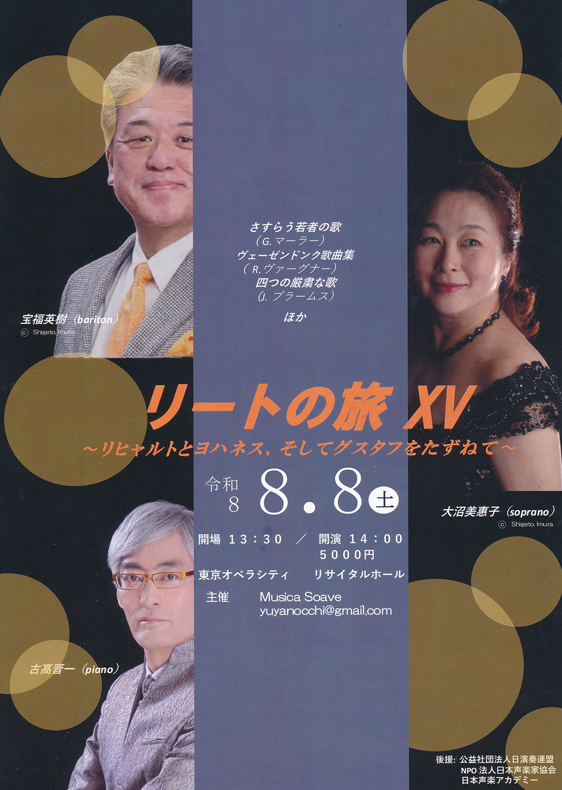 リートの旅XV 〜リヒャルトとヨハネス、そしてグスタフをたずねて〜 日本声楽家協会後援 |